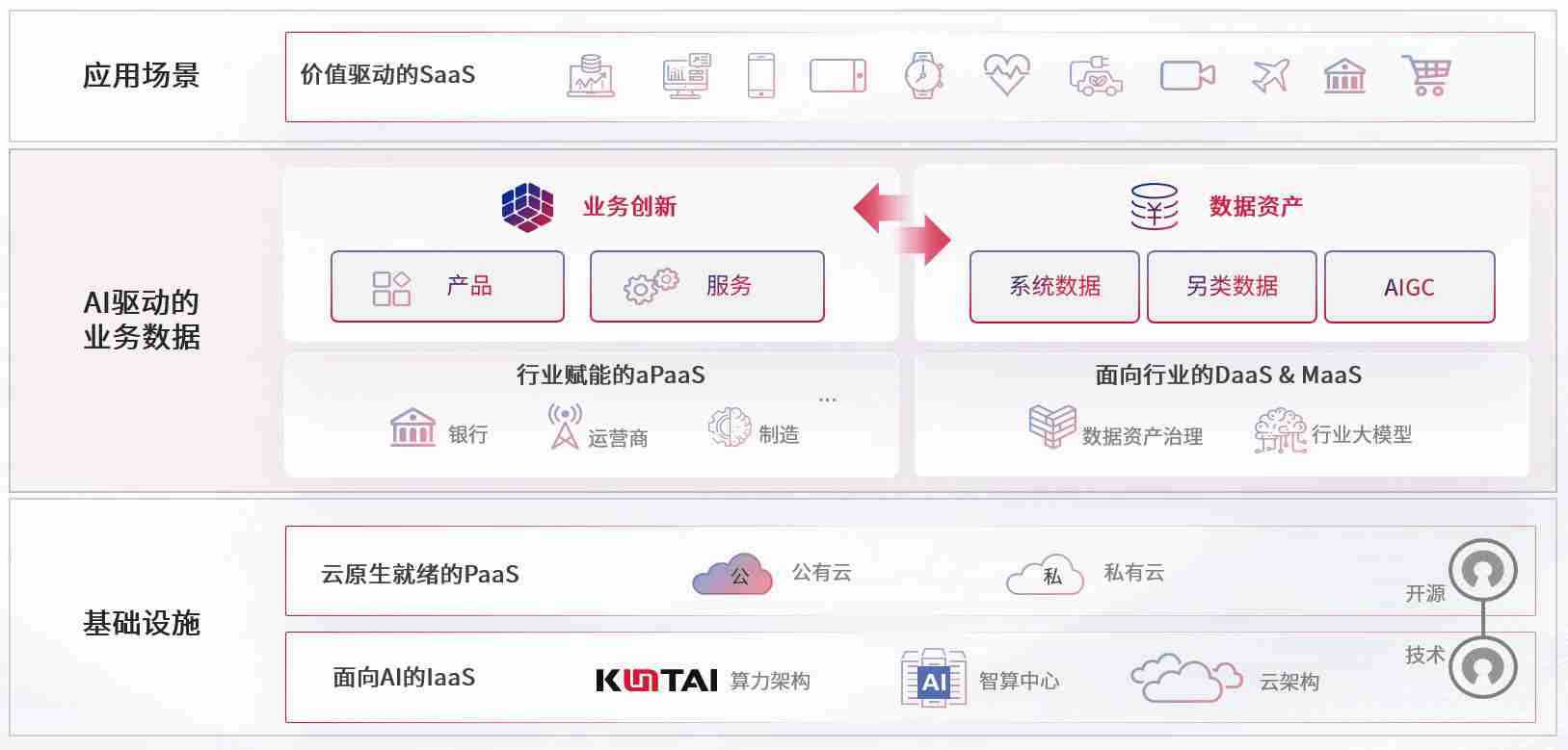 数字时代,,围绕企业数字化转型的关键要素,,,,创富论坛数码开创性的提出数云融合战略和技术体系框架,,,着力在云原生、、、、数字原生、、、、AI原生和信创产业上架构产品和服务能力,,,,为处在不同数字化转型阶段的快消零售、、、汽车、、金融、、、医疗、、、政企、、教育、、、、运营商等行业客户提供泛在的敏捷IT能力和融合的数据驱动能力,,,,构建跨界融合创新的数字业务场景和新业务模式,,,,助力企业级客户建立面向未来的核心能力和竞争优势,,,全面推动社会的数字化、、、、智能化转型升级。。。